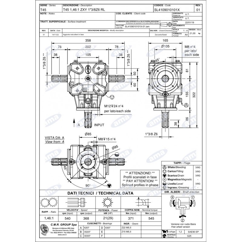 Moc maksymalna: 1,46:1- 21 kW (540 RPM)
