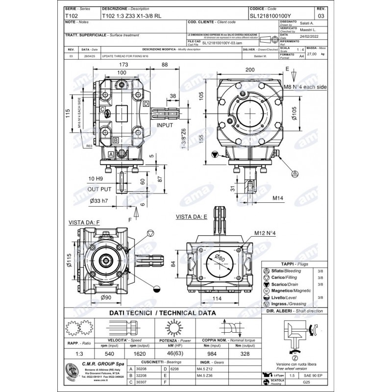 Wykonana z trwałego żeliwa, przekładnia gwarantuje wytrzymałość i odporność na intensywną pracę. Jest przystosowana do pracy z mocą do 46 kW (62KM) , co czyni ją odpowiednią dla wielu typów kosiarek. Odpowiada numerowi porównawczemu COMER T313J