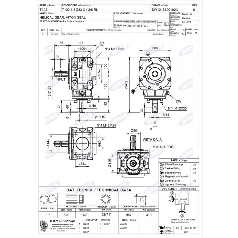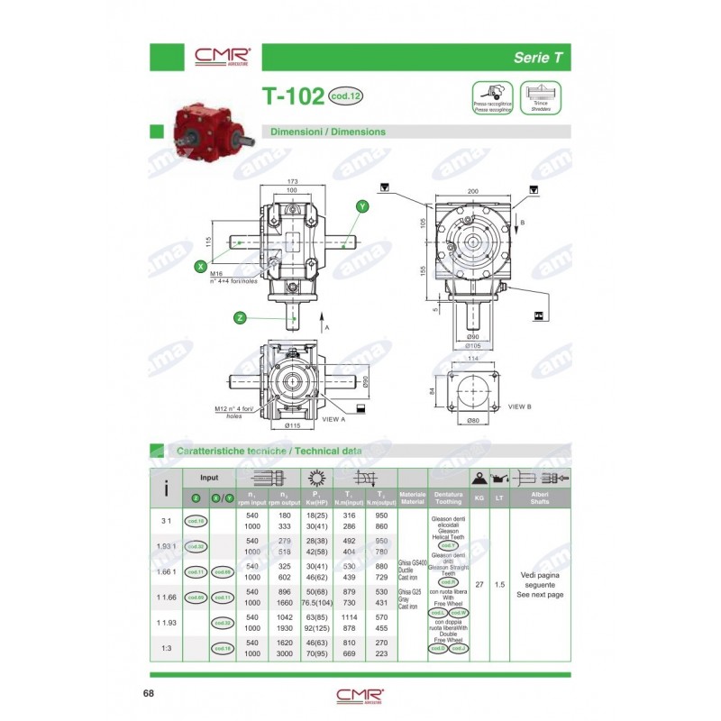 Wykonana z trwałego żeliwa, przekładnia gwarantuje wytrzymałość i odporność na intensywną pracę. Jest przystosowana do pracy z mocą do 46 kW (62KM) , co czyni ją odpowiednią dla wielu typów kosiarek. Odpowiada numerowi porównawczemu COMER T313J