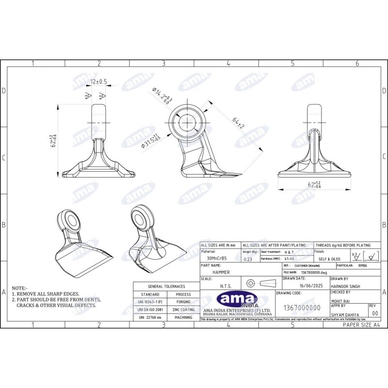 Młotki bijakowe AMA to wysokiej jakości elementy robocze przeznaczone do intensywnej pracy w maszynach rolniczych i komunalnych. Produkowane są przez firmę AMA w nowoczesnych fabrykach we Włoszech, z zachowaniem rygorystycznych norm jakościowych i technologicznych.