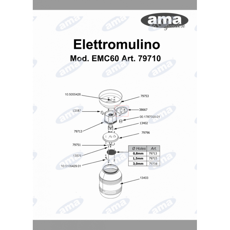 Materiały: Korpus i lejek zasypowy ze stali nierdzewnej i aluminium, pojemnik na zmielony materiał z nietoksycznego tworzywa.