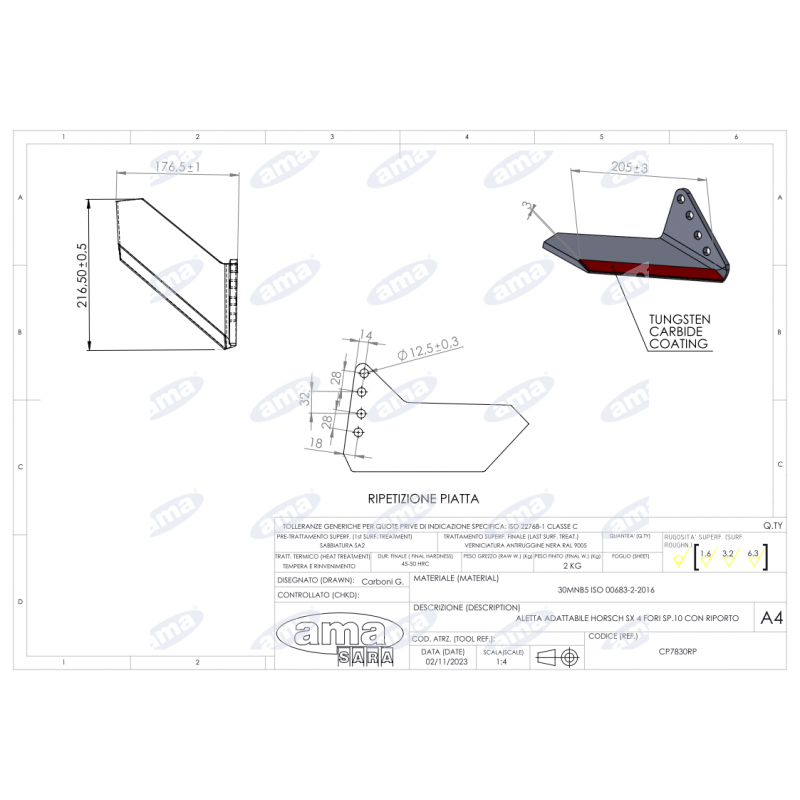 Lemiesz wykonany z wysokiej jakości materiału wzmocniony napawem, charakteryzuję się zwiększoną odpornością na ścieranie.