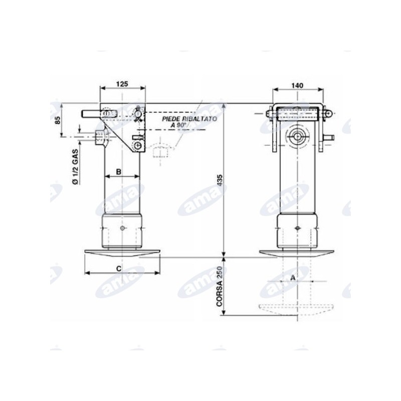 Hydrauliczna stopa podporowa, przeznaczona do zastosowań w maszynach rolniczych, budowlanych oraz przyczepach, gdzie wymagane jest stabilne i bezpieczne podparcie. Konstrukcja jednostronnego działania umożliwia wysunięcie stopy za pomocą siłownika hydraulicznego, natomiast powrót do pozycji złożonej odbywa się automatycznie dzięki zintegrowanej sprężynie powrotnej. Zdolność podparcia w zakresie 3300 kg do 4970 kg (zapewne w zależności od warunków pracy lub konfiguracji) gwarantuje niezawodność nawet przy dużych obciążeniach.