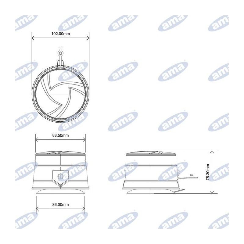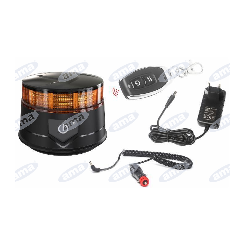 Lampa ostrzegawcza LED 12-24V zasilana akumulatorowo z pilotem zdalnego sterowania, czas pracy ponad 6 godzin na jednym naładowaniu, czas ładowania 4 godziny. Moc 19W klasa ochrony IP 67, 3 tryby błysku i 4 tryby obrotu, temperatura pracy -40°C do 65°C.