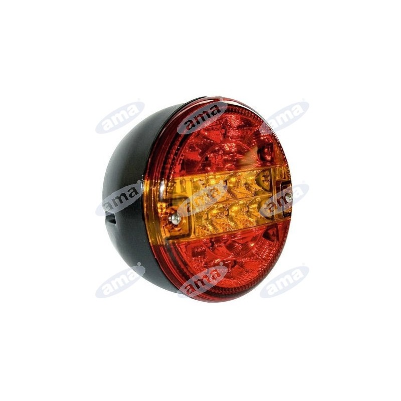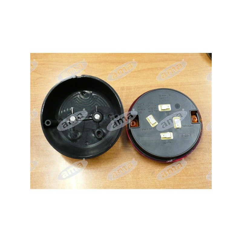 Lampa tylna LED o średnicy 140 mm przeznaczona do pojazdów z instalacją 12–24 V. Wyposażona w funkcje światła pozycyjnego, kierunkowskazu oraz światła STOP, zapewnia wysoką widoczność i bezpieczeństwo podczas jazdy. Zastosowanie technologii LED gwarantuje niskie zużycie energii oraz długą żywotność. Solidna konstrukcja oraz stopień ochrony IP65 chronią lampę przed kurzem i strumieniami wody, dzięki czemu sprawdzi się w pojazdach ciężarowych, przyczepach oraz maszynach rolniczych i budowlanych. Lampa przystosowana jest do montażu po prawej lub lewej stronie pojazdu. Posiada homologację ECE oraz certyfikaty CE i RoHS, potwierdzające zgodność z europejskimi normami. Średnica lampy wynosi 140 mm, rozstaw otworów montażowych 45 mm, a połączenie elektryczne realizowane jest za pomocą konektora faston 6,3 mm. Produkt objęty jest roczną gwarancją.