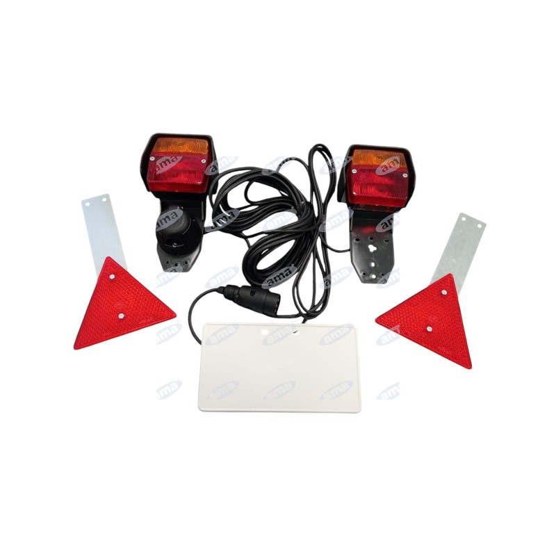 Kompletny zestaw oświetlenia tylnego, idealny do przyczep i maszyn rolniczych, które wymagają mobilnego i łatwego w montażu systemu sygnalizacyjnego z dodatkowym oświetleniem tablicy rejestracyjnej. Zestaw jest w pełni zintegrowany i gotowy do natychmiastowego użycia.
