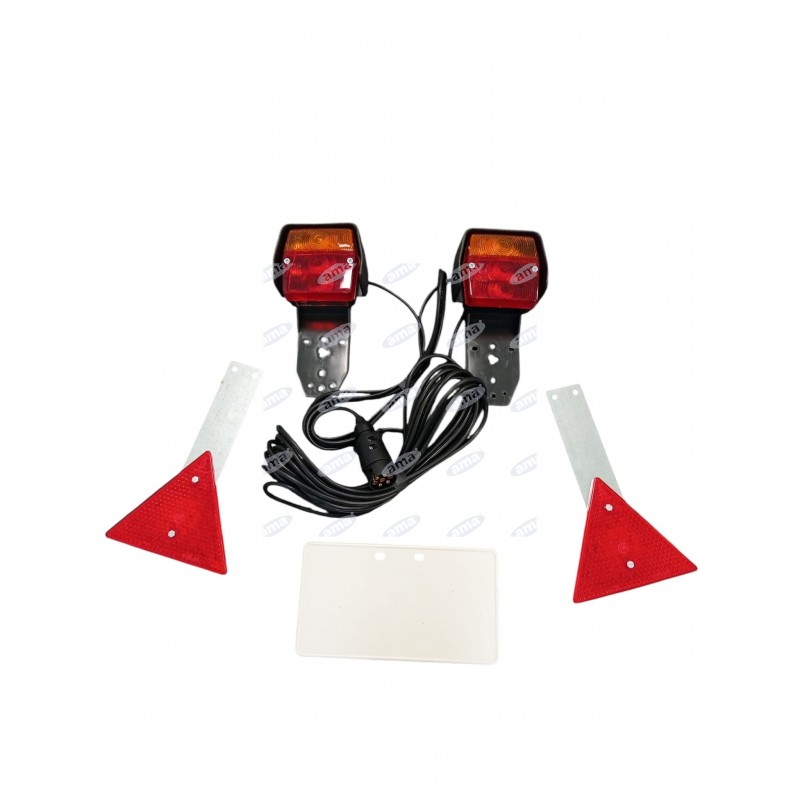 Kompletny zestaw oświetlenia tylnego, idealny do przyczep i maszyn rolniczych, które wymagają mobilnego i łatwego w montażu systemu sygnalizacyjnego z dodatkowym oświetleniem tablicy rejestracyjnej. Zestaw jest w pełni zintegrowany i gotowy do natychmiastowego użycia.