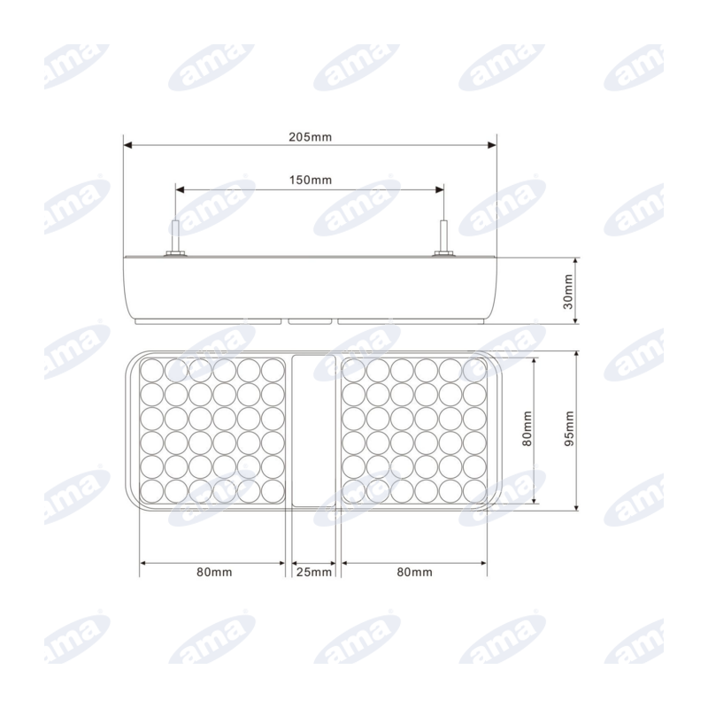 Tylna lampa LED 12-30V 205x30x95 mm – kierunkowskaz, stop, światło pozycyjne, reflektor