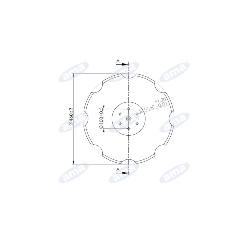 Wysokiej jakości, zębaty talerz do brony o średnicy 460 mm i grubości 5 mm. Wykonany ze stali borowej 30, charakteryzuje się podwyższoną odpornością na ścieranie oraz wyjątkowo długą żywotnością dzięki procesowi walcowania (nie frezowania). Posiada rozstaw otworów mocujących wynoszący 100 mm oraz otwory o wymiarach 6x10,5 mm. Jest to zamiennik oryginalnego talerza Lemken o numerze 3490471.