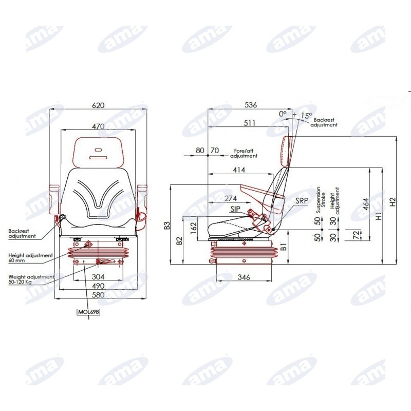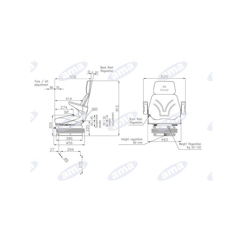 Fotel spełnia normy ISO7096 EM3-EM5-EM6-EM8-EM9, ISO3776-2, FMVSS e ISO3795, ISO7096, EM3-EM5-EM6-EM8-EM9, ISO3776-2"