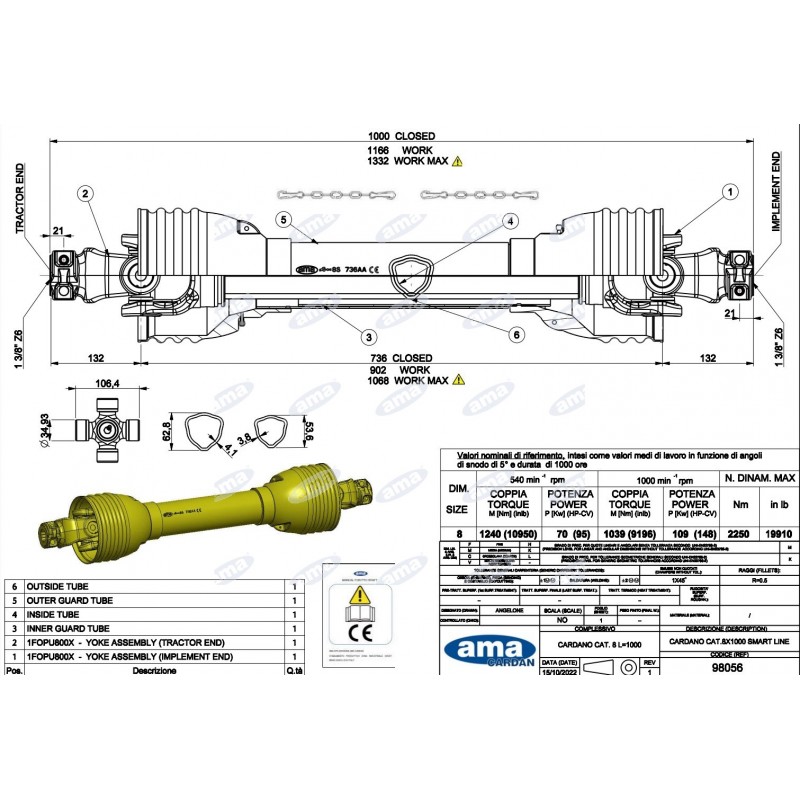 Wał uniwersalny L1800, 1240Nm SMART LINE BLACK