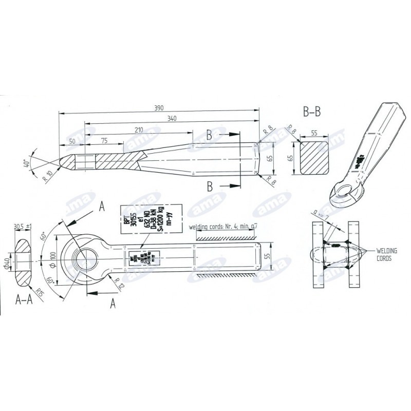 Wysokiej jakości ucho zaczepu o dopuszczalnym obciążeniu do 3000 kg i długości L = 390 mm. Przeznaczone do zastosowań w maszynach rolniczych, przyczepach oraz innych urządzeniach wymagających pewnego i bezpiecznego połączenia.